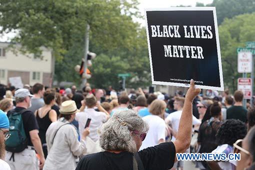 FERGUSON (Etats-Unis), 9 août (Xinhua) -- Un groupe de 600 personnes a observé dimanche quatre minutes trente de silence en hommage à Michael Brown au mémorial qui lui est dédié à Ferguson (Missouri), un an après la mort de ce jeune Noir de 18 ans tué par un policier blanc, Darren Wilson.