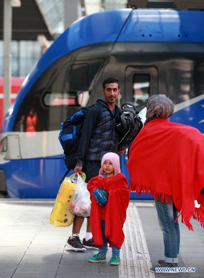 MUNICH, 6 septembre (Xinhua) -- Quelque 3.700 réfugiés sont arrivés samedi à Munich par le train en provenance de Hongrie alors que 3.000 autres devaient y parvenir plus tard.