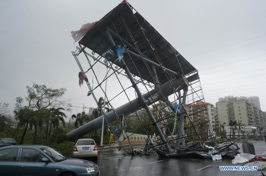 Le typhon, apportant des vents violents et des pluies torrentielles, a frappé la ville côtière de Zhanjiang dimanche à 14h10, avec des vents d'une vitesse de 50 mètres par seconde, selon l'observatoire.