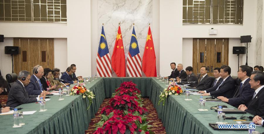 C'est la quatrième réunion bilatérale entre les deux dirigeants depuis que M. Xi a rendu une visite d'État en Malaise, en octobre 2013. Au terme de leurs pourparlers à Kuala Lumpur, MM. Xi et Najib ont annoncé la mise en œuvre d'un partenariat stratégique complet entre les deux pays.