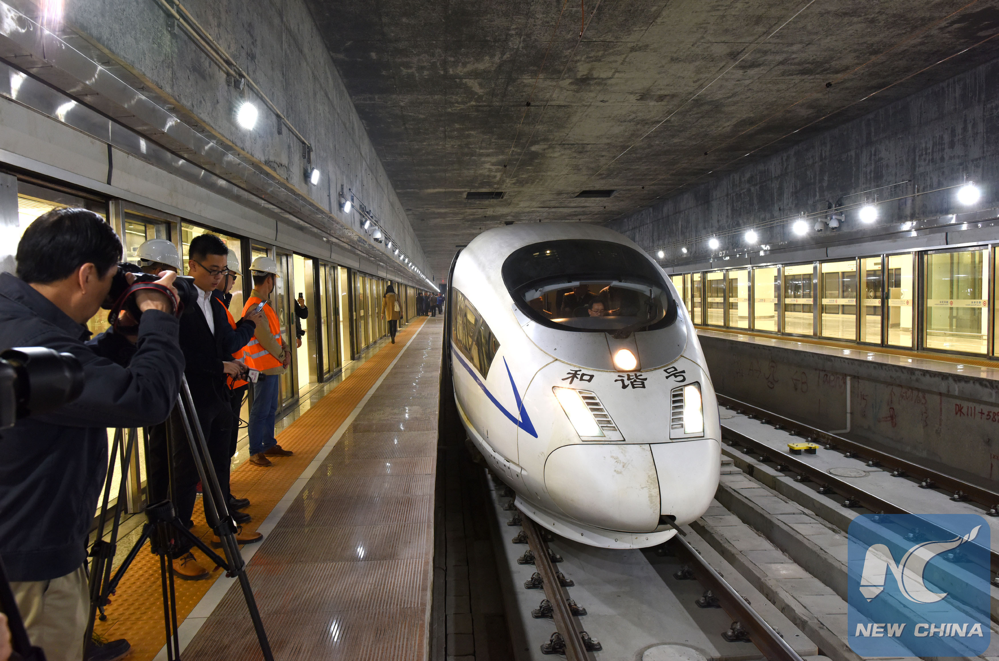 GUANGZHOU, 1er janvier (Xinhua) -- La plus grande gare ferroviaire souterraine est entrée en service, mercredi, dans la ville de Shenzhen, au sud de la Chine, lançant le service ferroviaire à grande vitesse entre Guangzhou et Hong Kong.