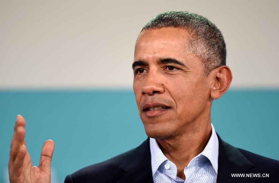 Le président américain Barack Obama prend la parole lors d'une conférence de presse à l'issue du Sommet ASEAN-Etats-Unis en Californie, aux Etats-Unis, le 16 février 2016. (Xinhua/Yin Bogu)