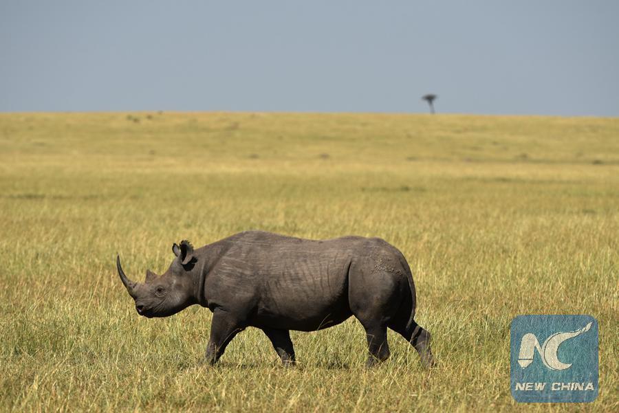 Un rhino noir se promène dans la Réserve nationale de Masai Mara National Reserve, dans le sud-ouest du Kenya, le 16 août 2015. (Xinhua/Sun Ruibo)