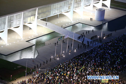 RIO DE JANEIRO, 16 mars (Xinhua) -- Plusieurs milliers de Brésiliens sont descendus mercredi dans les rues de plusieurs villes du pays après que la présidente Dilma Rousseff eut nommé son prédécesseur, Luiz Inacio Lula da Silva, au poste de chef du secrétariat du gouvernement avec le rang de ministre d'Etat.
