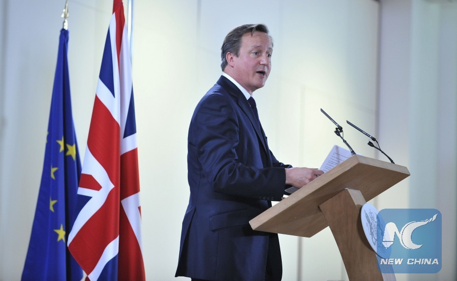 Le Premier ministre britannique, David Cameron, prononce un discours à la fin du sommet de l'UE à Bruxelles en Belgique, le 24 octobre 2014. (Photo Xinhua/Ye Pingfan)