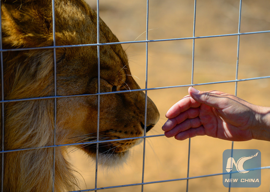 Un lion du Sanctuaire des grands félins d'Emoya, à Vaalwater en Afrique du Sud. (photo d'archives: Xinhua/Zhai Jianlan)