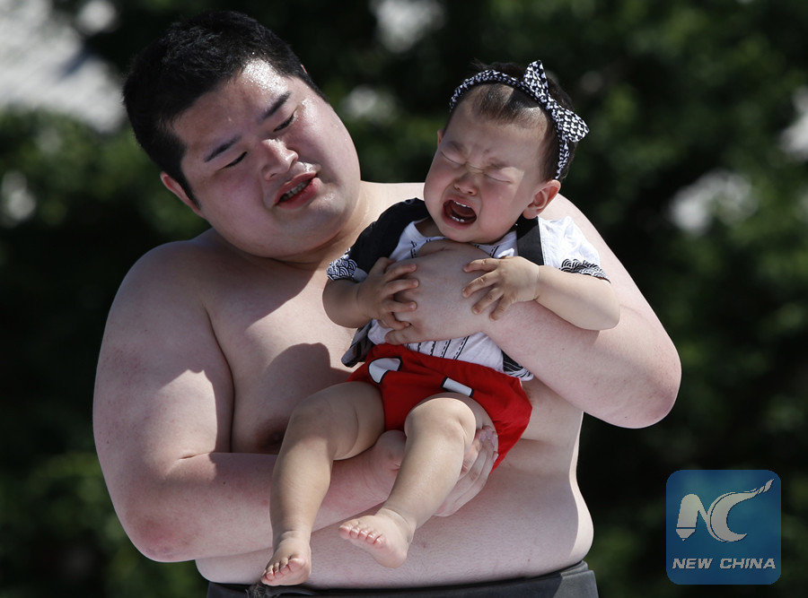 Un bébé pleure dans une compétition "baby-cry sumo" à Tokyo au Japan le 30 mai 2015. (Xinhua)