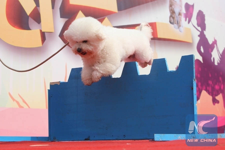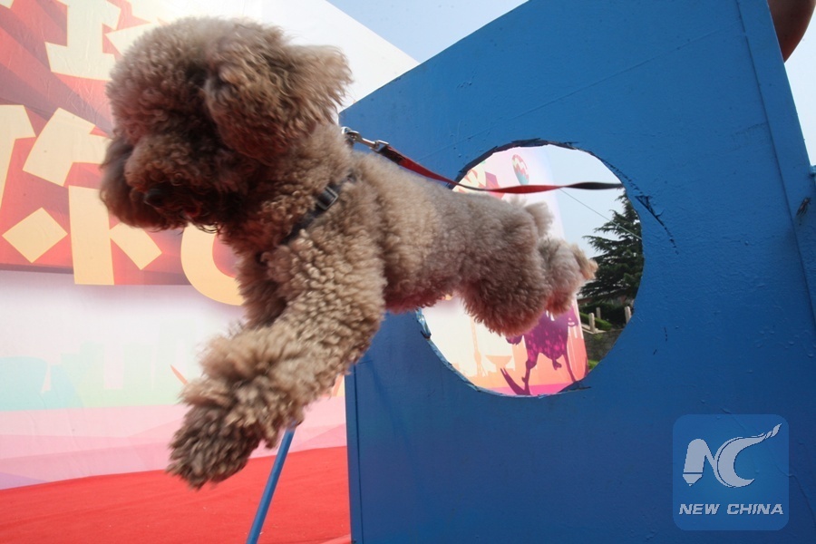 Un concours de chiens s'est tenu le 29 mai 2016 à Yantai, ville de l'est de la Chine. (Xinhua/Shen Jizhong)