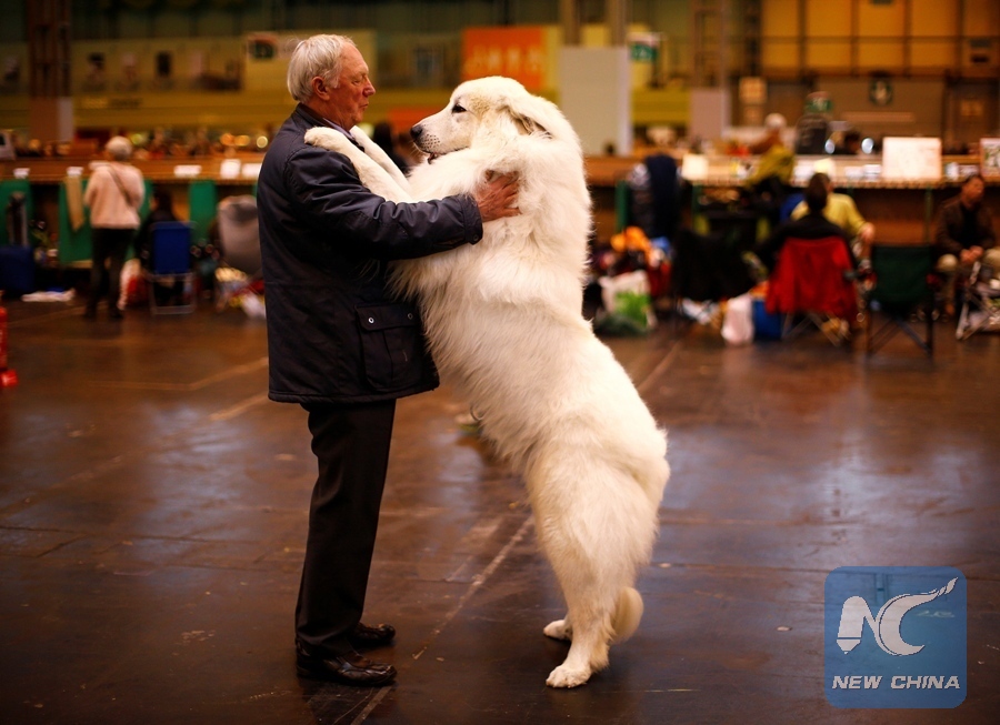 Arthur Ward et son chien de montagne des Pyrénées lors du premier jour de l'exposition canine de Crufts à Birmingham, en Angleterre le 5 mars 2015. (Photo: Reuters/Darren Staples)