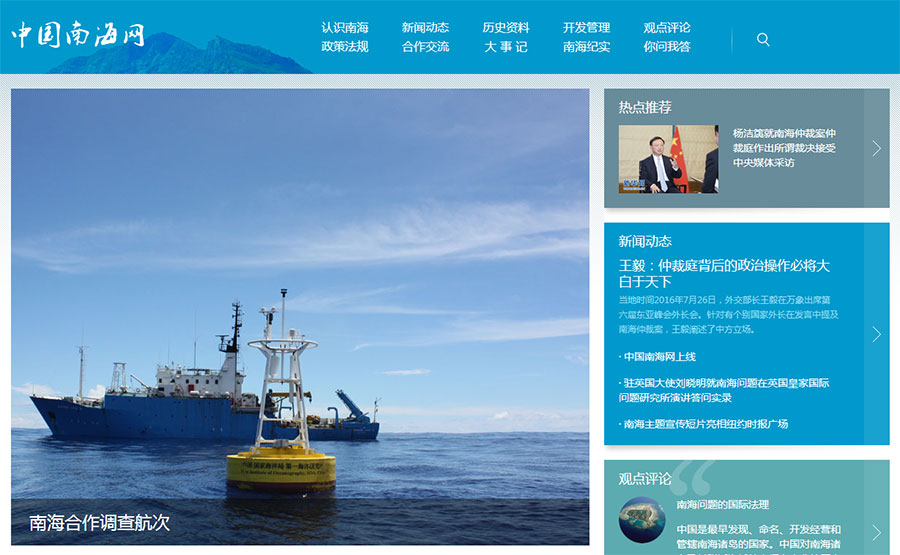 (Capture d'écran de la page d'accueil du site sur la mer de Chine méridiaonale)