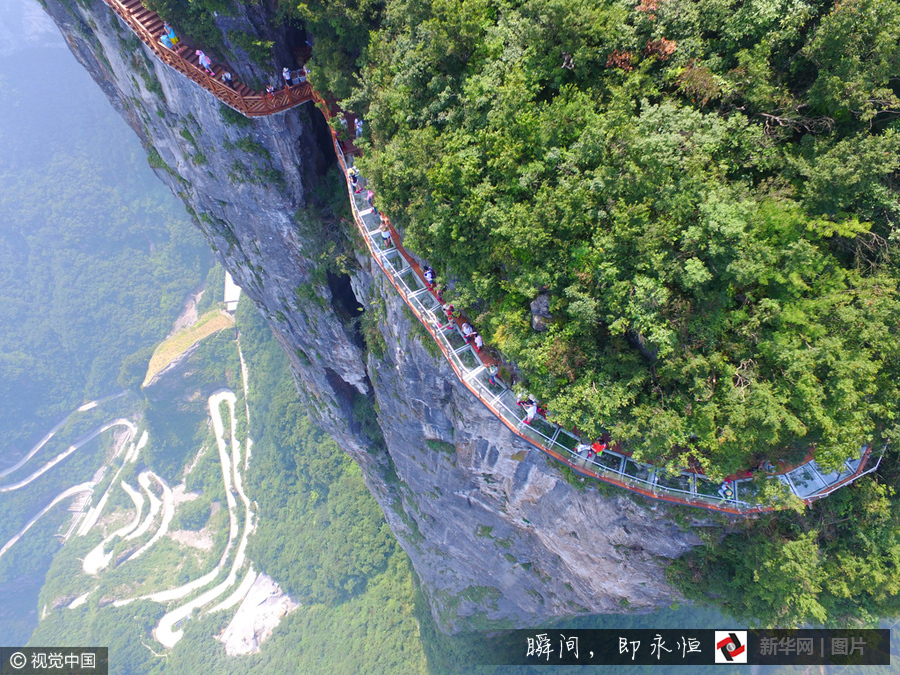 Ouverture d'une troisième passerelle en verre sur le mont Tianmen