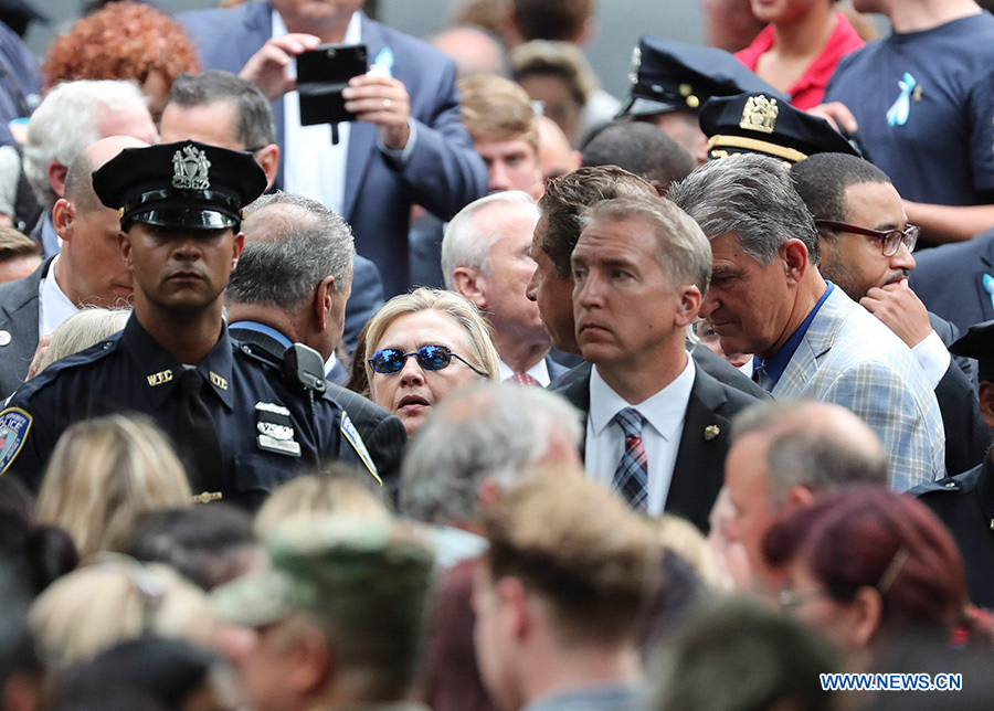 La candidate démocrate à la présidentielle américaine Hillary Clinton (centre), à New York, le 11 septembre 2016.(Xinhua/Wang Ying)