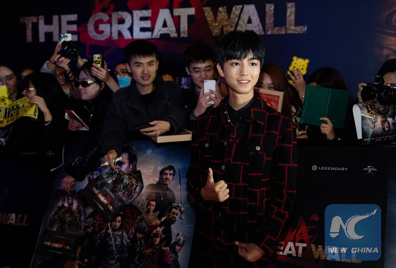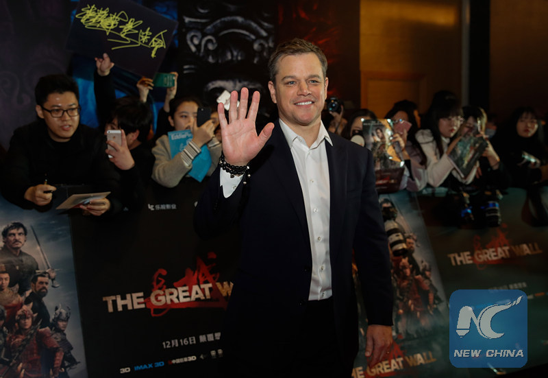 L'avant-première du film d'action "La Grande Muraille", considéré comme le film le plus cher en Chine avec un budget de 135 millions de dollars, a été organisée à Beijing mardi.