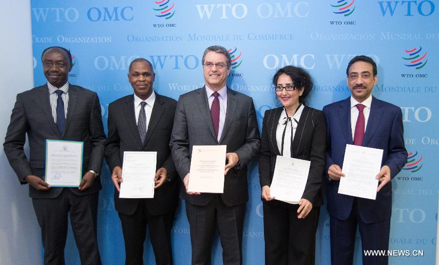 GENEVE, 22 février (Xinhua) -- Le directeur général de l'Organisation mondiale du commerce (OMC) Roberto Azevedo a déclaré mercredi que l'Accord sur la facilitation des échanges (AFE) est entré en vigueur après que deux-tiers des membres eurent complété le processus de ratification interne.