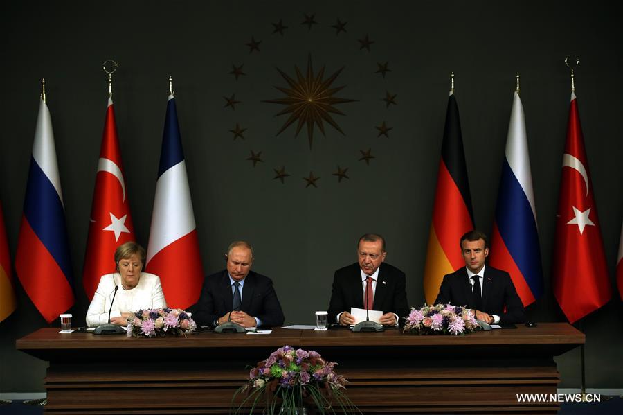 ISTANBUL, 27 octobre (Xinhua) -- Samedi, le président turc Recep Tayyip Erdogan a dit que le sommet quadripartite s'est achevé sur un appel lancé par les dirigeants à un cessez-le-feu complet qui mettra fin au bain de sang en Syrie.