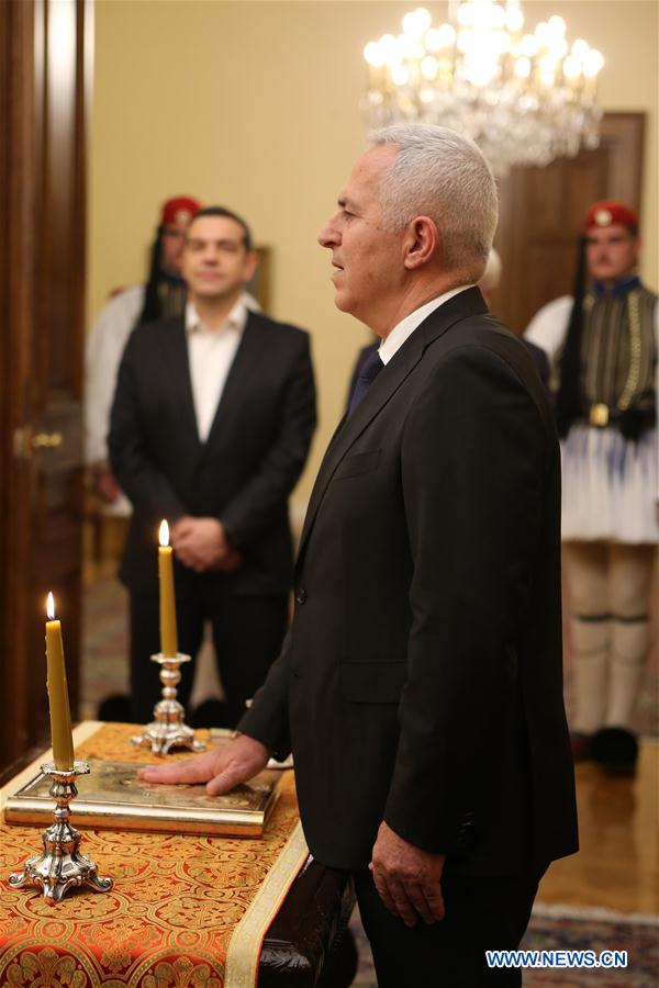 ATHENES, 14 janvier (Xinhua) -- L'amiral Evangelos Apostolakis, ancien chef de l'état-major général de la Défense nationale de Grèce, a pris lundi ses nouvelles fonctions de ministre de la Défense, juste avant le vote de confiance du Parlement envers le gouvernement grec qui doit avoir lieu mercredi soir, a rapporté l'agence de presse nationale grecque, AMNA.