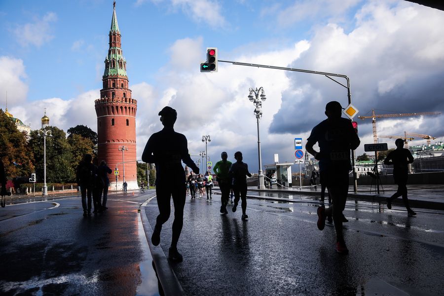 Des participants lors du Marathon de Moscou, en Russie, le 22 septembre 2019. (Xinhua/Maxim Chernavsky)