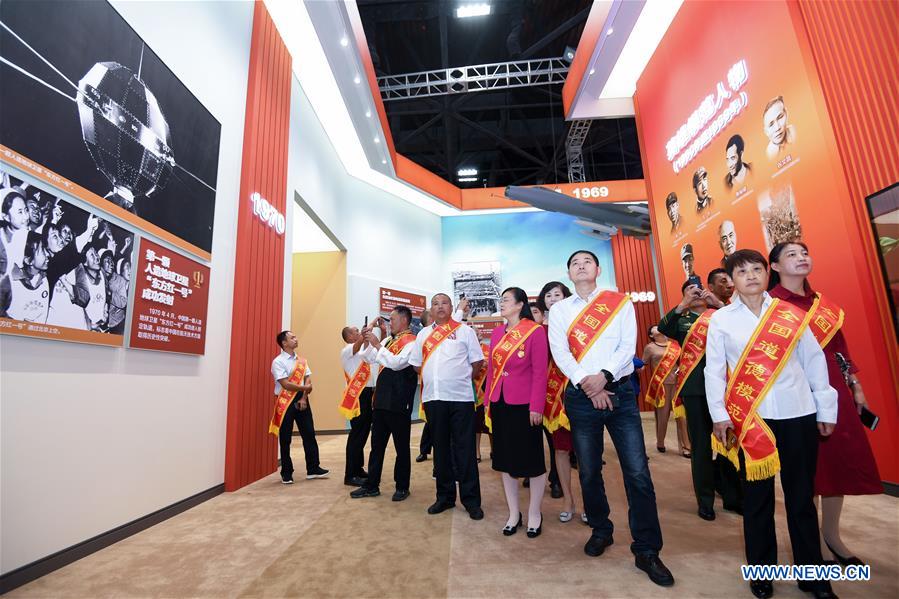 BEIJING, 24 septembre (Xinhua) -- Plus de 200 citoyens modèles de tout le pays ont été invités mardi à visiter une grande exposition à Beijing.
