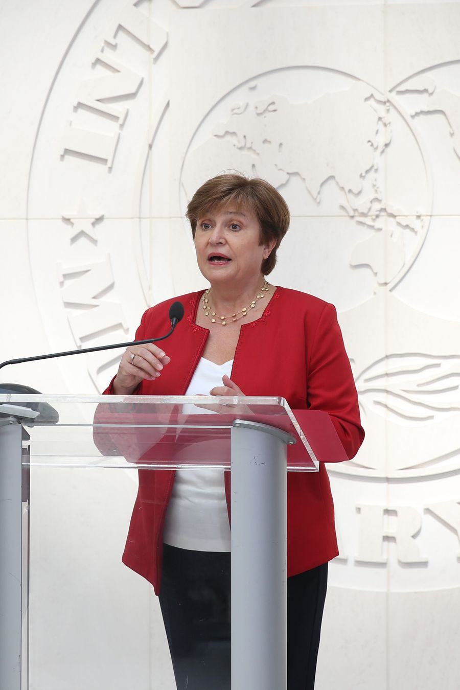 Kristalina Georgieva prend part le 25 septembre à une conférence de presse tenue au siège du Fonds monétaire international (FMI) à Washington, aux Etats-Unis. (Xinhua/Hu Yousong)