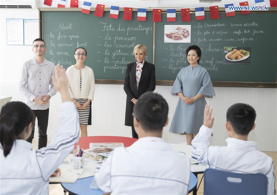 Peng Liyuan et Brigitte Macron visitent un lycée à Shanghai
