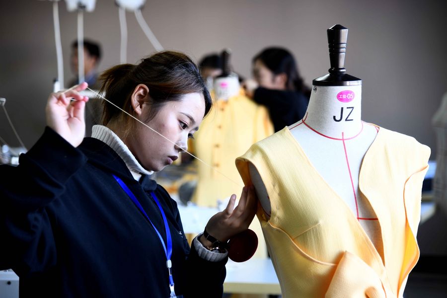 Des participants à un concours des technologies de la mode à l'Ecole professionnelle de Weihai, dans la province chinoise du Shandong (est), le 11 novembre 2019. (Photo : Guo Xulei)