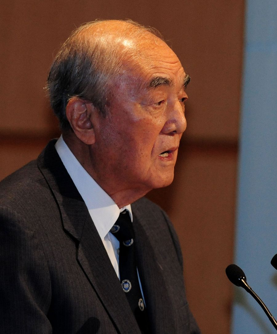 Photo d'archives de Yasuhiro Nakasone, qui prend la parole lors de la 20e réunion annuelle du Forum parlementaire Asie-Pacifique, tenue à Tokyo le 9 janvier 2012. (Xinhua/Ji Chunpeng)