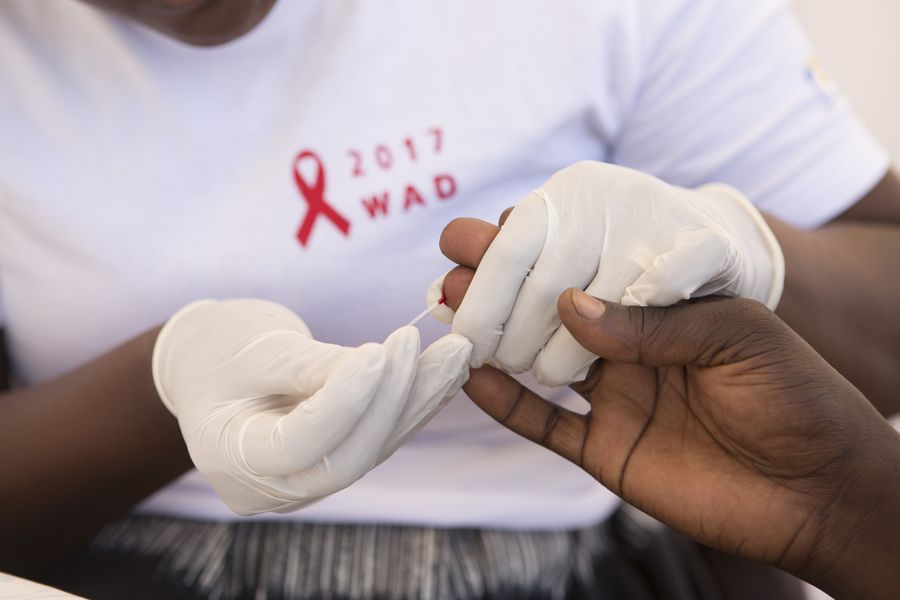 Une personne est dépistée gratuitement pour le VIH pendant les activités de la Journée mondiale de lutte contre le SIDA à Kigali, au Rwanda, le 1er décembre 2017. (Xinhua/Gabriel Dusabe)