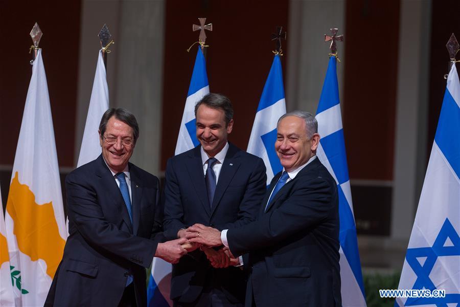 ATHENES, le 2 janvier (Xinhua) -- La Grèce, Chypre et Israël ont signé jeudi un accord intergouvernemental pour la construction du gazoduc de la Méditerranée orientale (EastMed) qui doit relier les réserves de gaz naturel de la région à la Grèce et au reste de l'Europe.