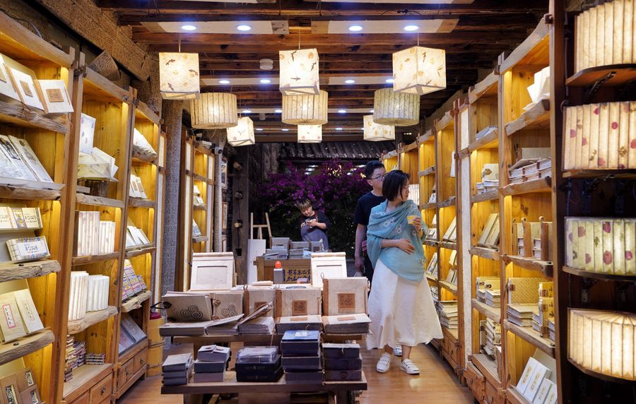 Des touristes sélectionnent des produits culturels et créatifs dans la ville ancienne de Lijiang, dans la province du Yunnan, dans le sud-ouest de la Chine, le 6 juin 2019. (Photo : Qin Qing)