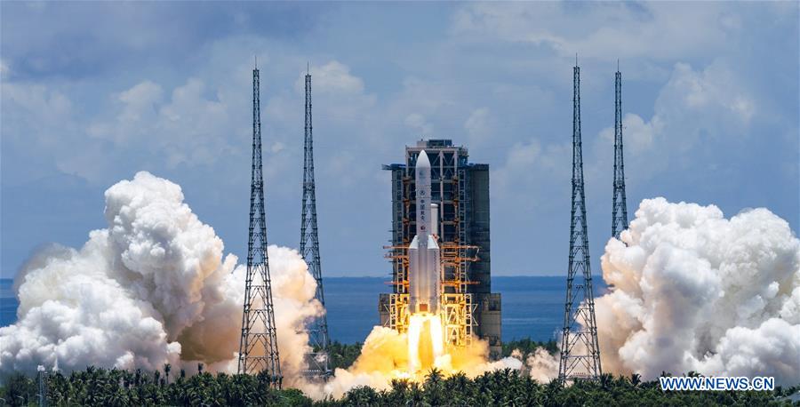 Une fusée Longue Marche-5, actuellement le plus gros lanceur chinois qui a transporté le vaisseau spatial avec une masse d'environ cinq tonnes, s'est envolé dans le ciel, à 12h41 (heure de Beijing), depuis la zone de lancement du Centre de lancement spatial de Wenchang, dans la province insulaire de Hainan (sud de la Chine).