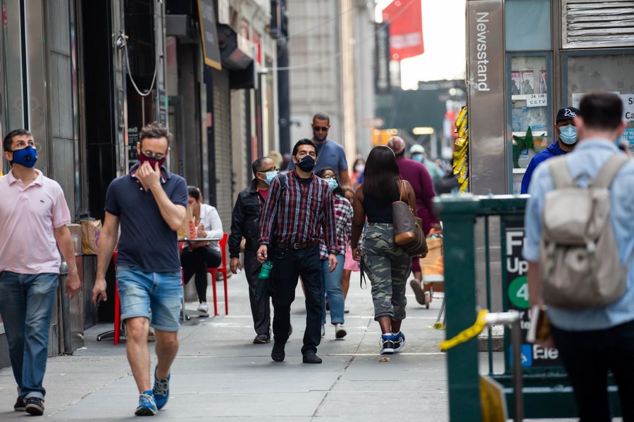 Des piétons portant des masques dans une rue à New York, aux Etats-Unis, le 25 septembre 2020 (photo : Michael Nagle/Xinhua)