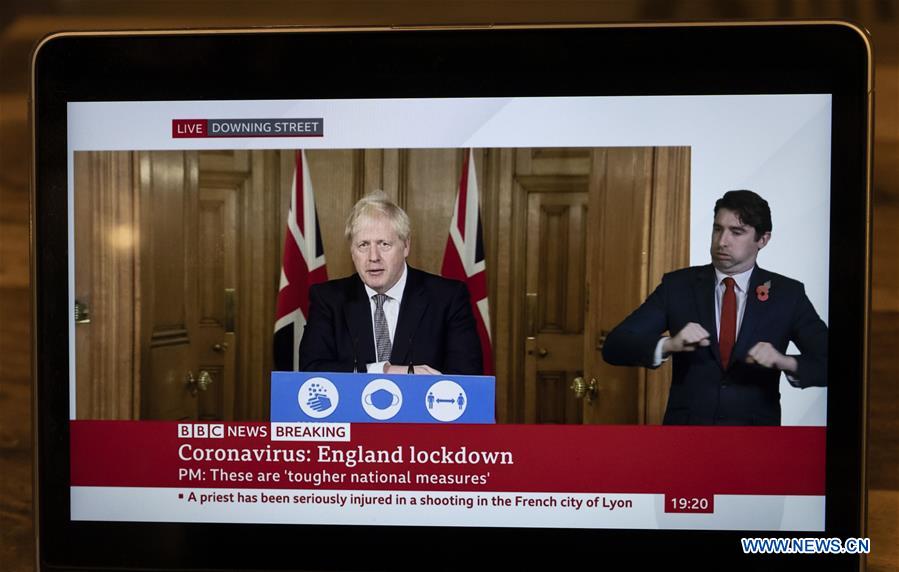 LONDRES, 31 octobre (Xinhua) -- Le Premier ministre britannique Boris Johnson a annoncé samedi que l'Angleterre va entrer dans une période de confinement d'un mois à partir de jeudi.