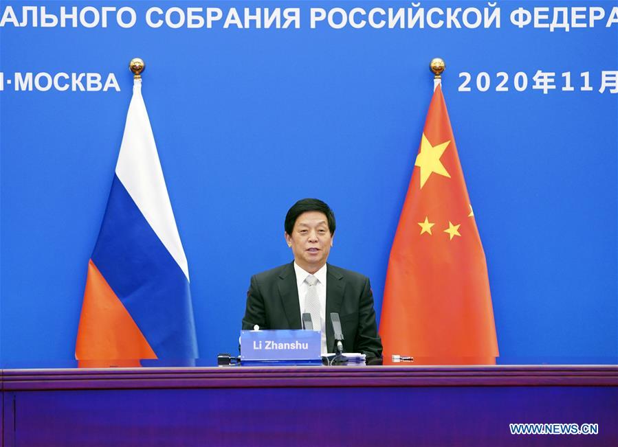 BEIJING, 3 novembre (Xinhua) -- Li Zhanshu, président du Comité permanent de l'Assemblée populaire nationale (APN, parlement chinois), a avancé lundi quatre propositions visant à promouvoir la coopération entre les organes législatifs de la Chine et de la Russie.