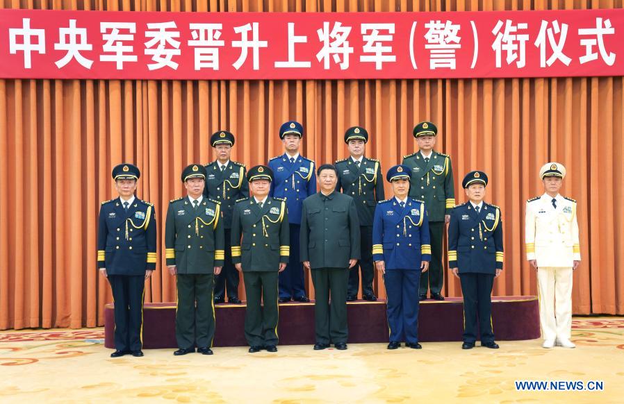 BEIJING, 18 décembre (Xinhua) -- Xi Jinping, président de la Commission militaire centrale (CMC), a remis vendredi à quatre officiers de l'armée et de la police armée des certificats d'ordre les promouvant au grade de général, le grade le plus élevé pour les officiers en service actif en Chine.