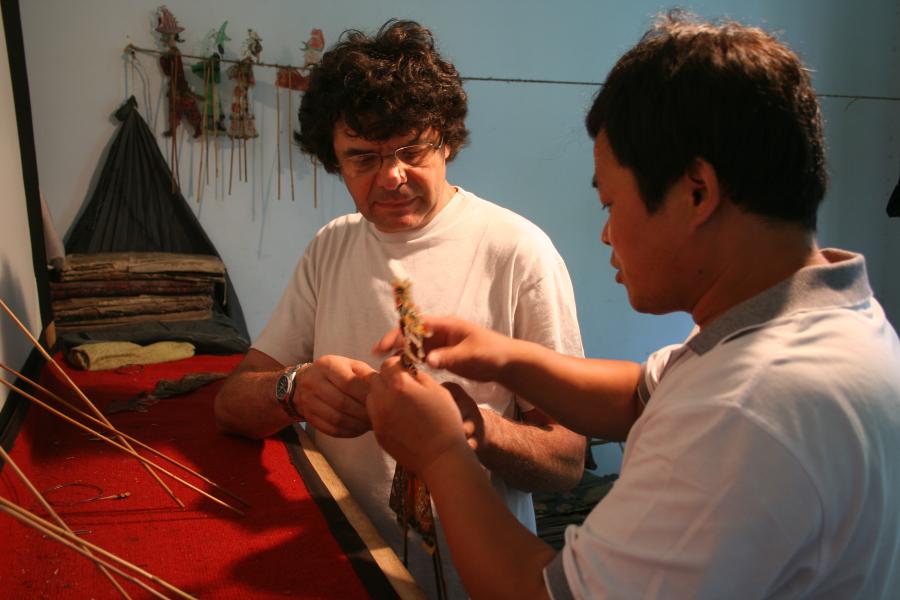 En 2003, à l'occasion de l'année des échanges culturels sino-français, Jean-Luc est venu dans l'arrondissement de Huazhou de la ville de Weinan, dans la province du Shaanxi (nord-ouest de la Chine), pour apprendre le théâtre d'ombres.