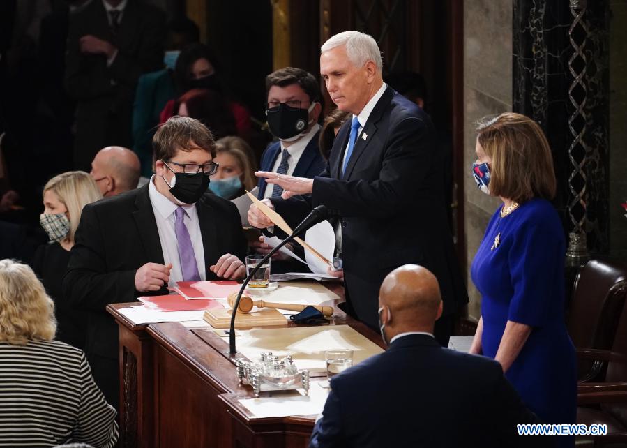 WASHINGTON, 7 janvier (Xinhua) -- Le Congrès américain a certifié tôt jeudi la victoire de Joe Biden à l'élection présidentielle du 3 novembre, quelques heures après que des partisans du président sortant Donald Trump eurent pris d'assaut le Capitole, interrompant le processus de certification pendant plusieurs heures.