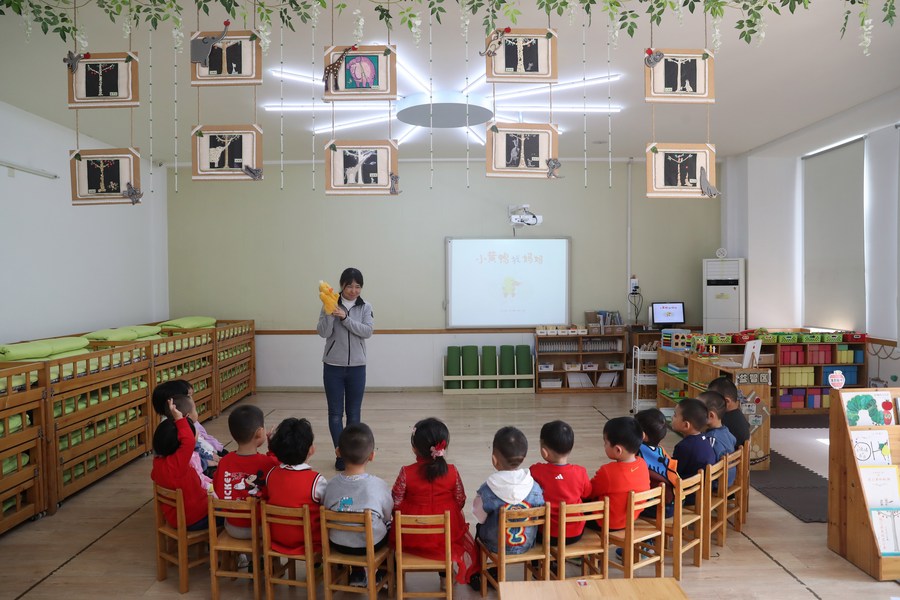 Des enfants suivent un cours dans une maternelle de Shenyang, capitale de la province chinoise du Liaoning (nord-est), le 19 février 2021. (Photo : Yang Qing)