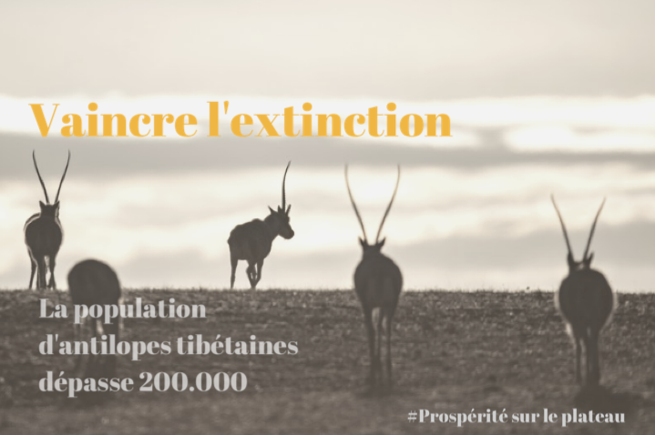 Grâce aux importants efforts déployés, la population d'antilopes tibétaines au Tibet est passée d'environ 50.000 dans les années 1990 à plus de 200.000 aujourd'hui. L'espèce a été ramenée du bord de l'extinction.