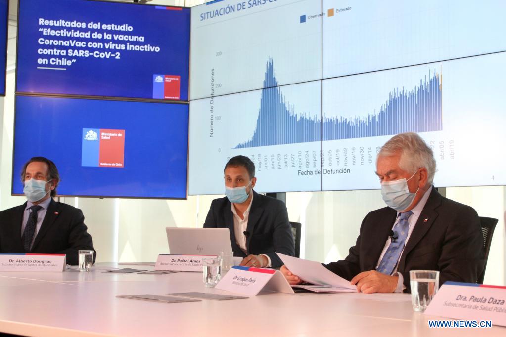SANTIAGO, 16 avril (Xinhua) -- Le vaccin CoronaVac développé par la société pharmaceutique chinoise Sinovac est efficace jusqu'à 67% pour empêcher les symptômes liés à la COVID-19, a déclaré vendredi le ministère de la Santé du Chili.