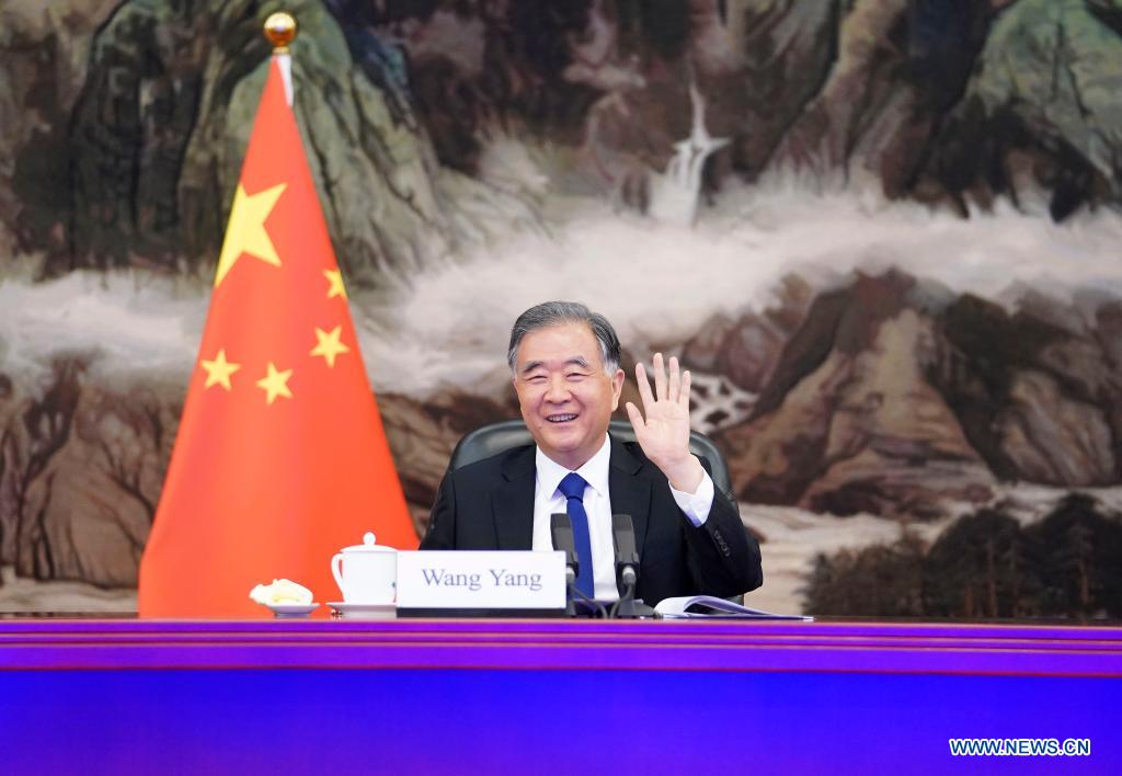 BEIJING, 10 mai (Xinhua) -- Le plus haut conseiller politique de la Chine, Wang Yang, a rencontré lundi le président du Sénat égyptien, Abdel Razeq, par liaison vidéo, s'engageant à renforcer les échanges amicaux entre les deux parties.