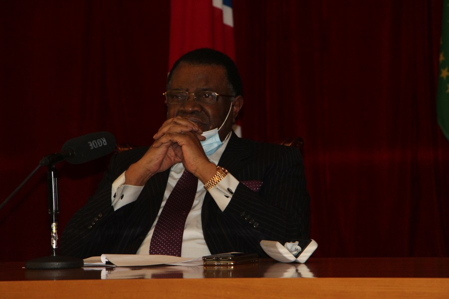 Photo d'archives prise le 22 juin 2020 montrant le président namibien Hage Geingob lors d'une conférence de presse à Windhoek, capitale de la Namibie. (Xinhua/Jacobina Mouton)