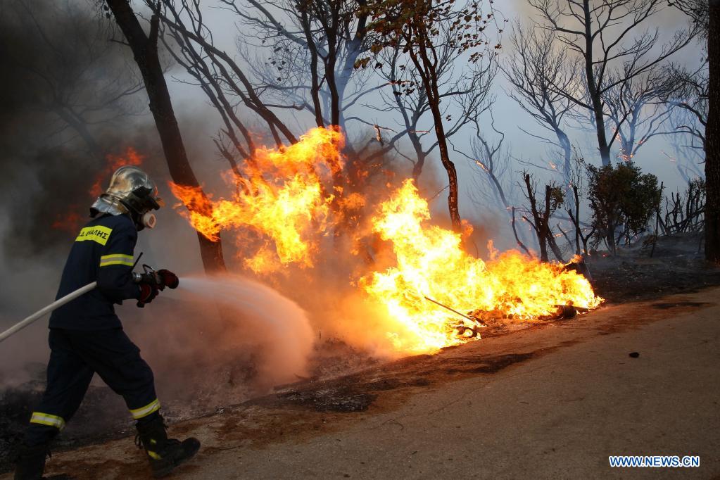 L'incendie apparu dans une forêt de pins dense d'Ano Varybobi s'est propagé rapidement en raison du temps chaud et sec qui frappe le pays depuis jeudi dernier. Les autorités ont envoyé des renforts à la brigade de pompiers et déployé des avions bombardiers d'eau pour combattre l'incendie.
