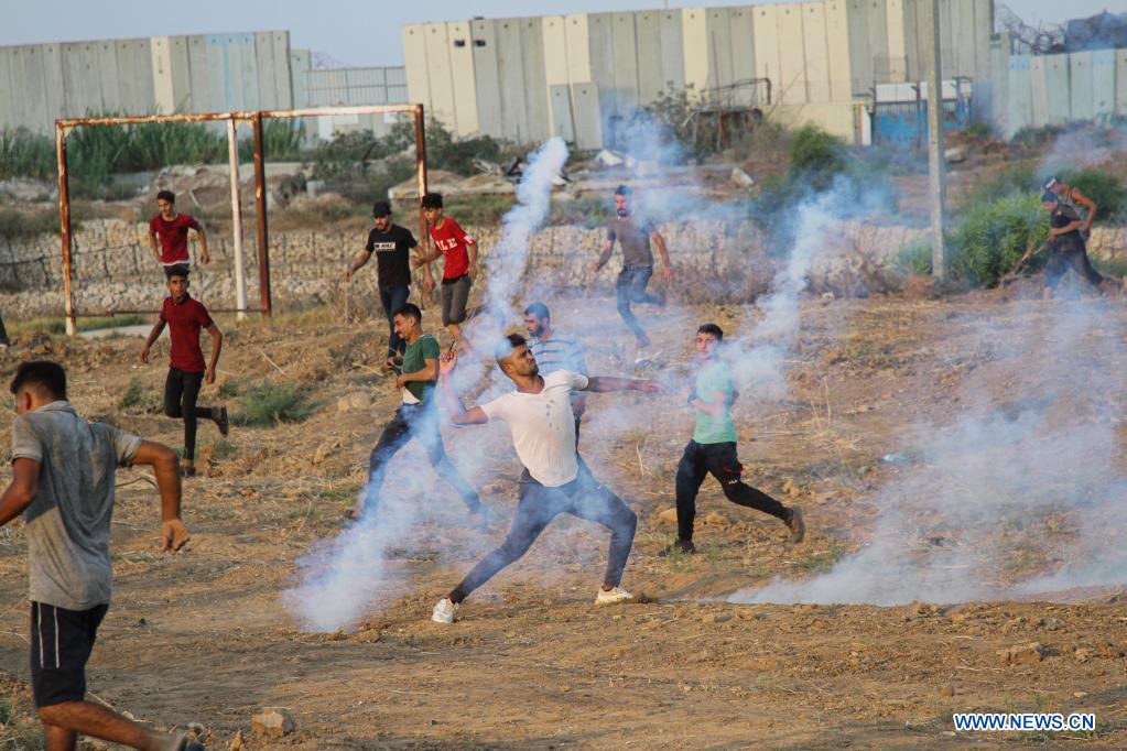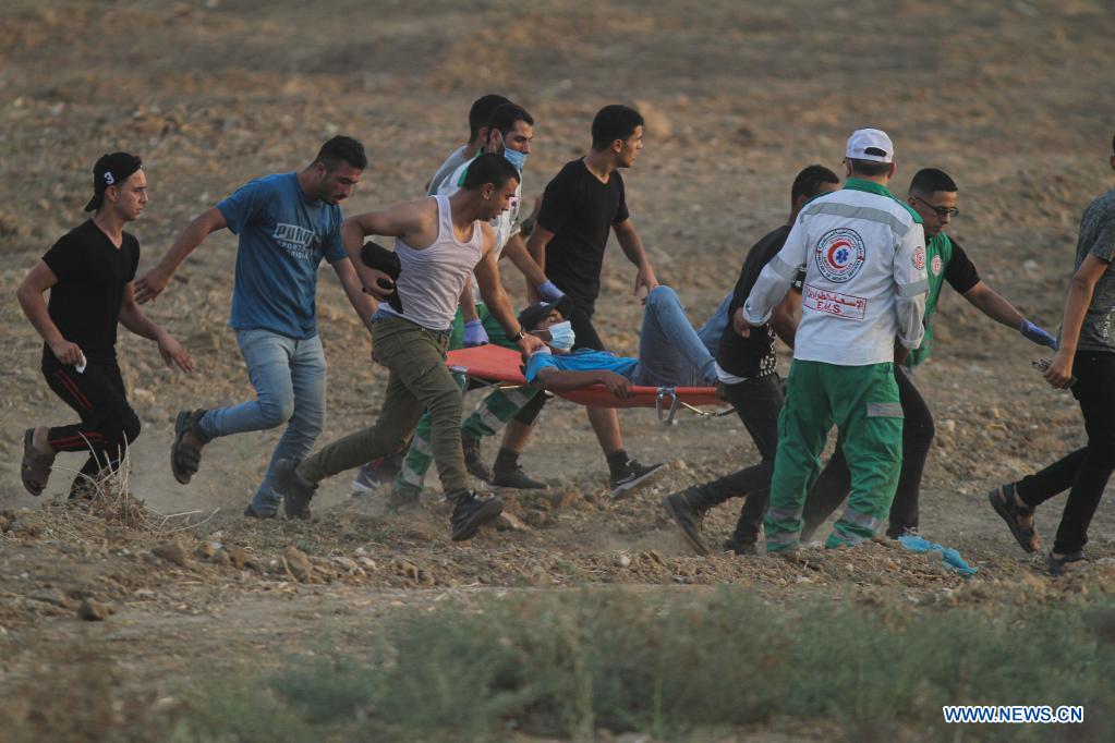 GAZA, 21 août (Xinhua) -- Des dizaines de manifestants palestiniens ont été blessés samedi lors d'affrontements avec des soldats israéliens près de la frontière entre l'est de la bande de Gaza et Israël, selon des médecins palestiniens.