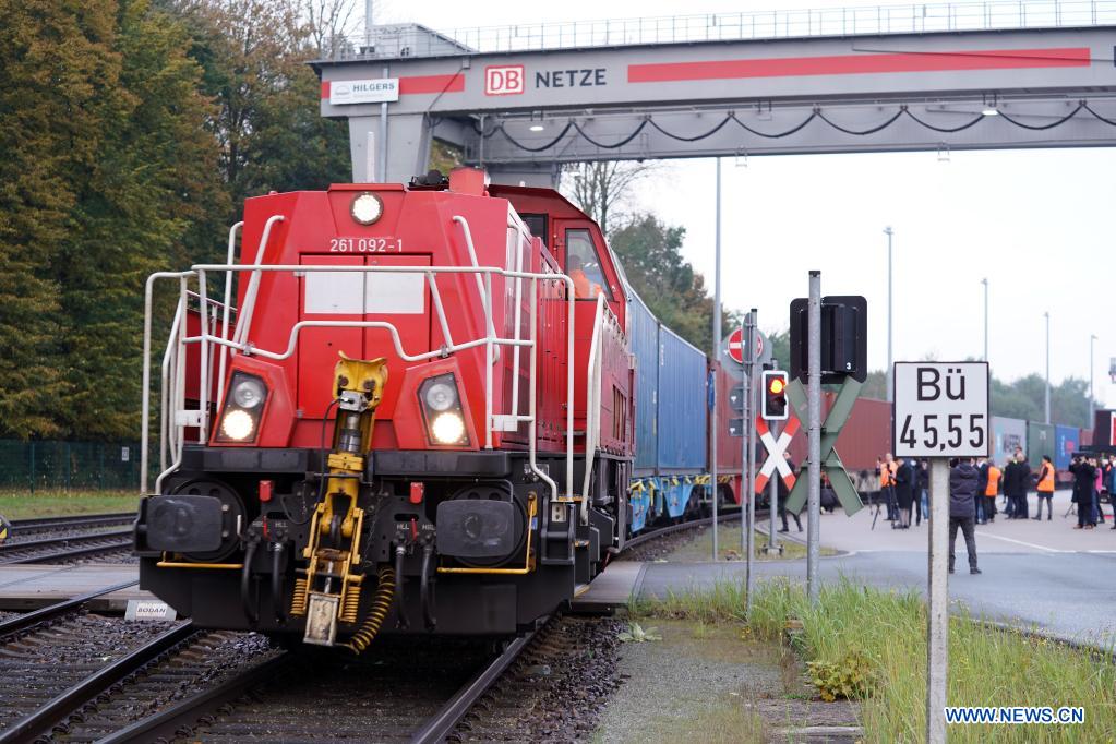 HAMBOURG (Allemagne), 26 octobre (Xinhua) -- Le premier train de marchandises Chine-Europe entièrement chargé est arrivé mardi à Hambourg, dans le nord de l'Allemagne, depuis Shanghai, centre économique de la Chine, élargissant ainsi les services ferroviaires entre l'Europe et l'Asie sur fond de perturbations logistiques.