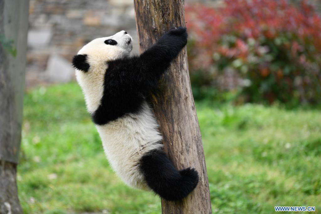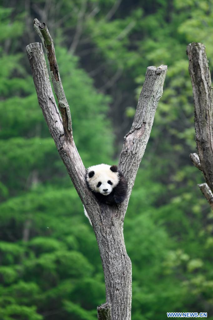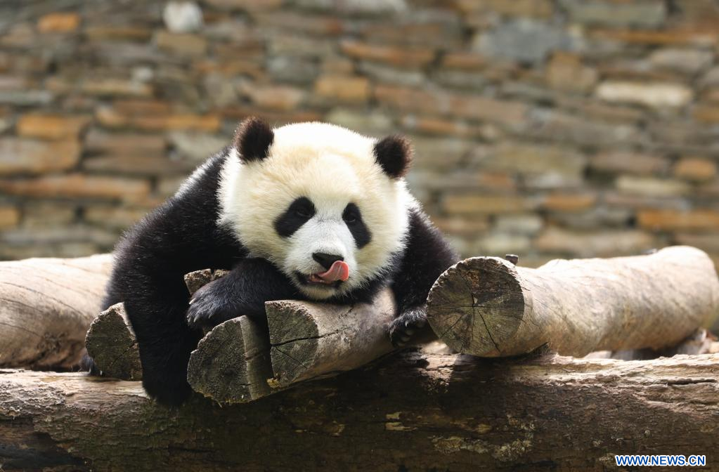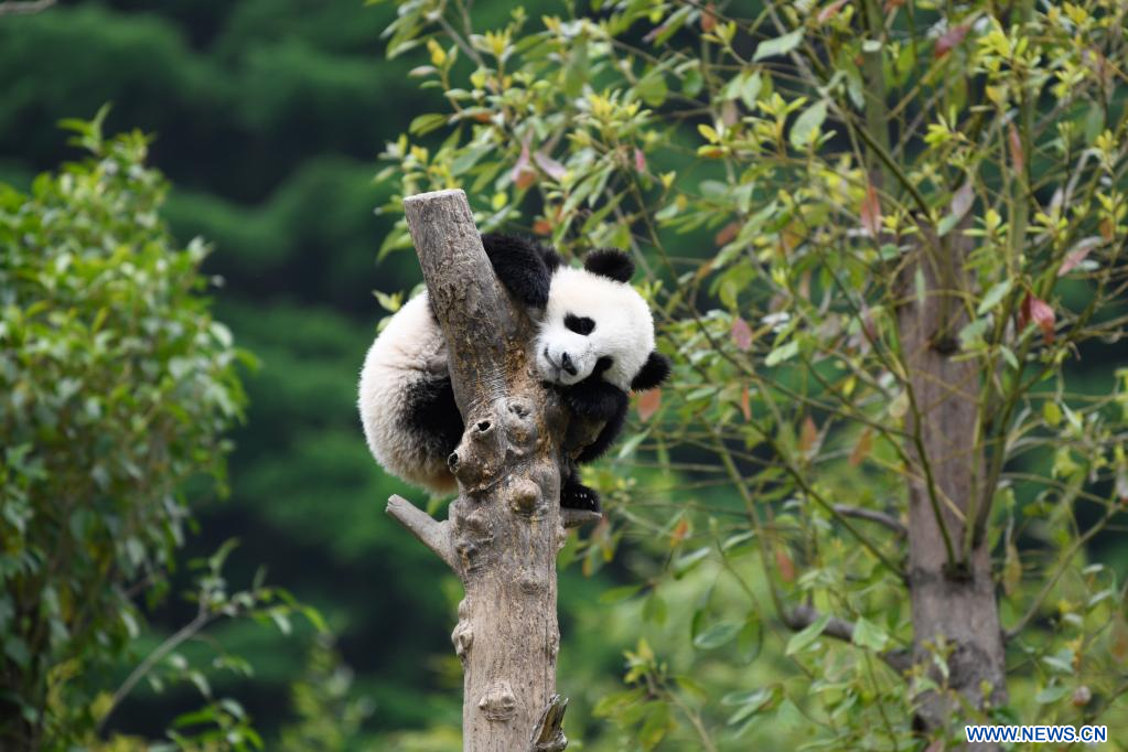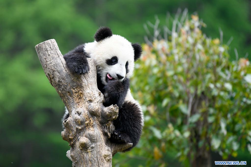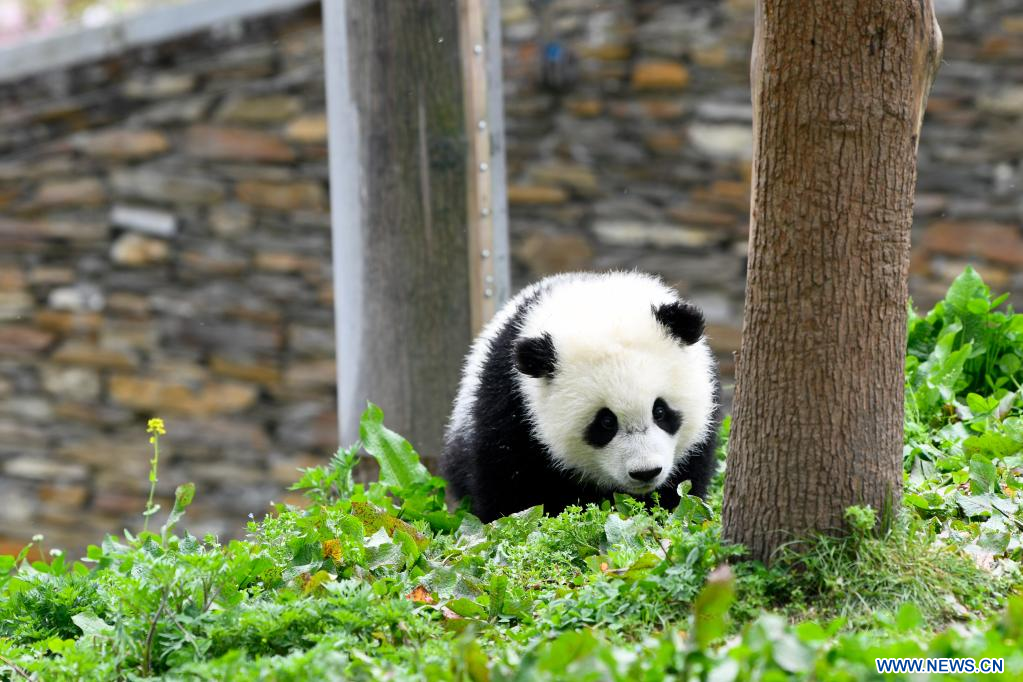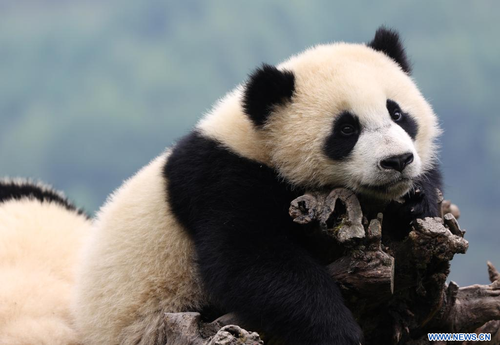 Un panda géant dans la base de Shenshuping du Centre de protection et de recherche des pandas géants de Chine dans la Réserve naturelle nationale de Wolong, dans la province chinoise du Sichuan (sud-ouest), le 24 avril 2022. (Xinhua/Chen Juwei)