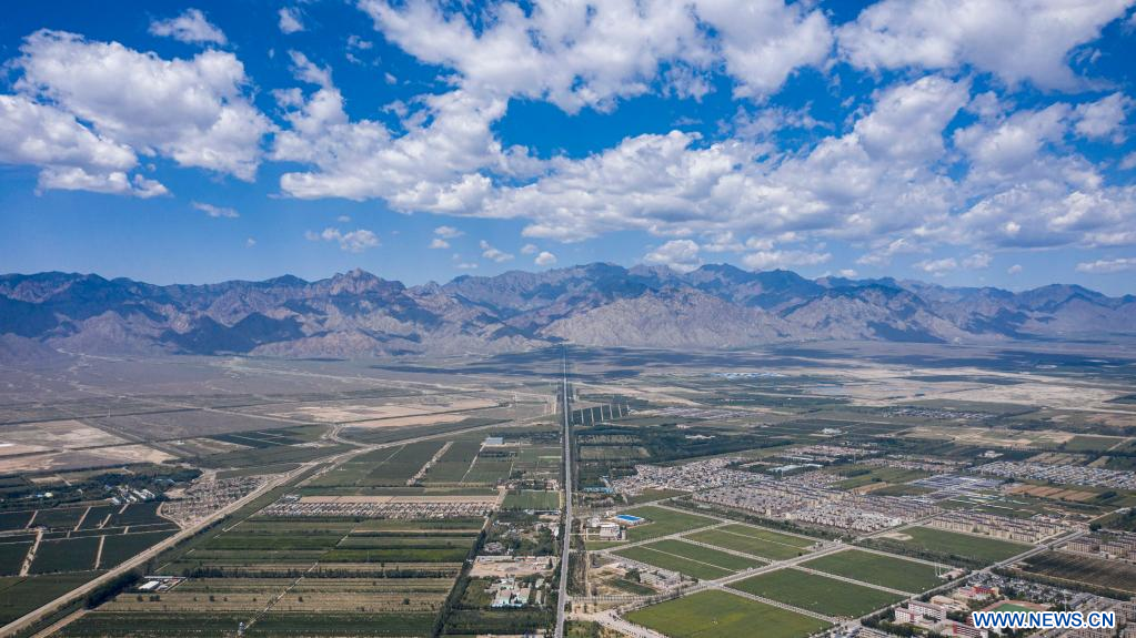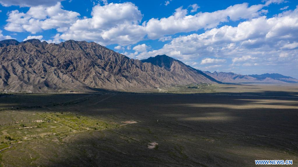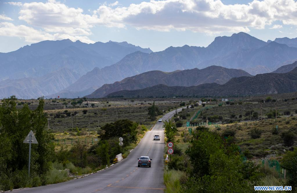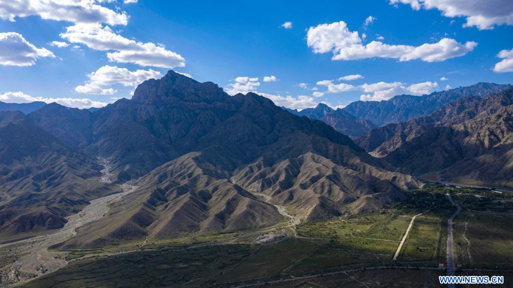 YINCHUAN, 31 août (Xinhua) -- Photo aérienne du paysage des monts Helan, à Yinchuan, dans la région autonome Hui du Ningxia (nord-ouest de la Chine), le 30 août 2022. (Photo : Yang Zhisen)