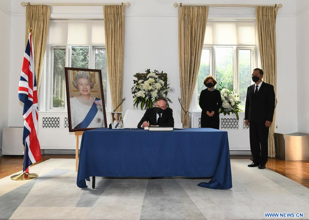 BEIJING, 12 septembre (Xinhua) -- Le vice-président chinois Wang Qishan s'est rendu lundi à l'ambassade du Royaume-Uni à Beijing pour pleurer le décès de la reine Elizabeth II du Royaume-Uni.