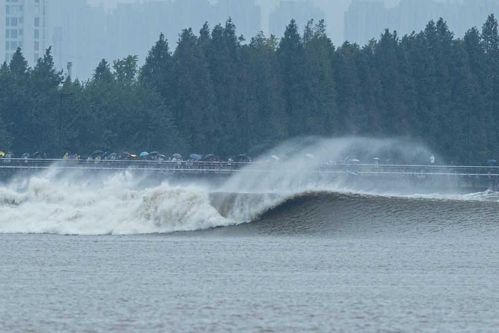 HANGZHOU, 14 septembre (Xinhua) -- Le mascaret du fleuve Qiantang, connu pour sa hauteur et sa vitesse, est une attraction touristique traditionnelle en Chine.