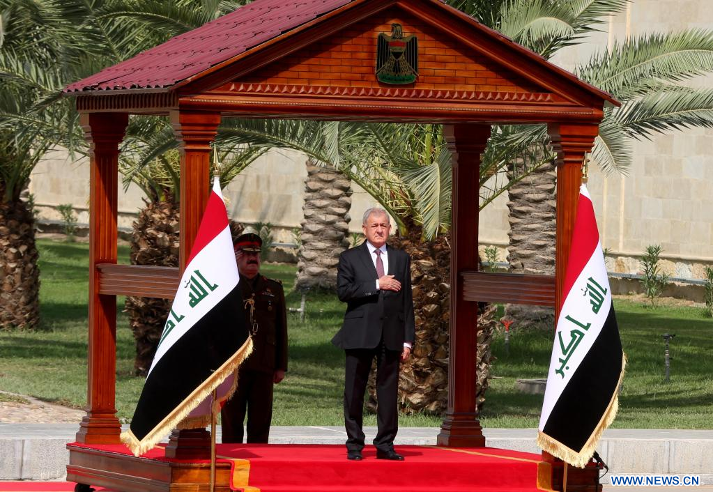 BAGDAD, 17 octobre (Xinhua) -- Le président irakien nouvellement élu Abdel Latif Rachid participe à une cérémonie à Badgad, en Irak, le 17 octobre. M. Rachid a pris ses fonctions lundi, exprimant son espoir d'une formation rapide du nouveau gouvernement. (Xinhua/Khalil Dawood)
