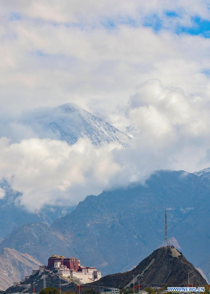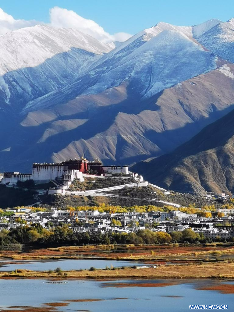 LHASSA, 30 octobre (Xinhua) -- Paysage automnal du palais du Potala, à Lhassa, dans la région autonome du Tibet, dans le sud-ouest de la Chine, le 25 octobre 2022. (Photo : Jiang Fan)
